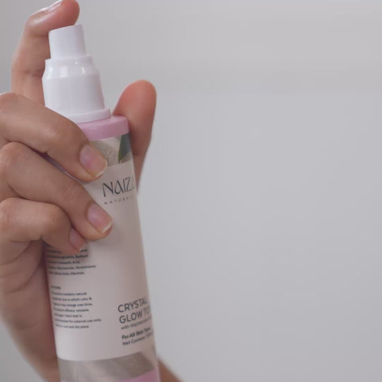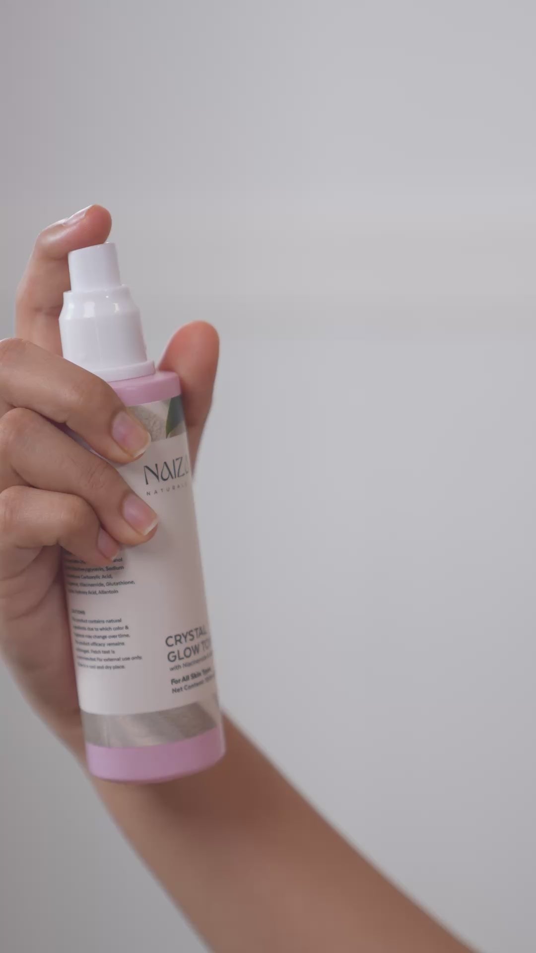 1. After cleansing, pour a few drops of Crystal Glow Toner onto a